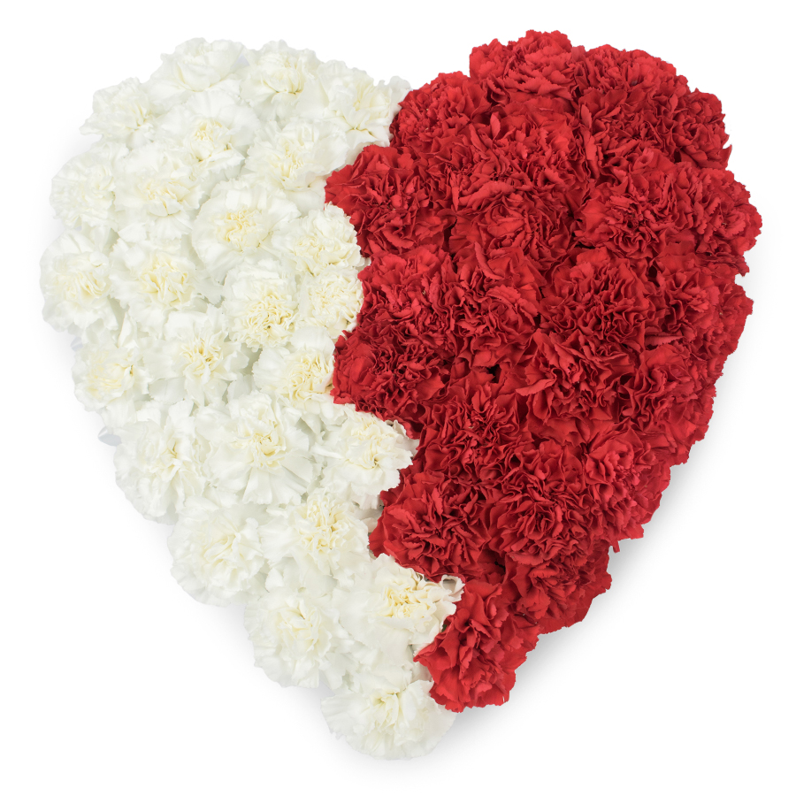 Introducing the Heart of Love Carnations Bouquet, a beautiful arrangement by Handy Flowers. This exquisite bouquet features a mix of white and red carnations, perfect for expressing sympathy and heartfelt emotions.